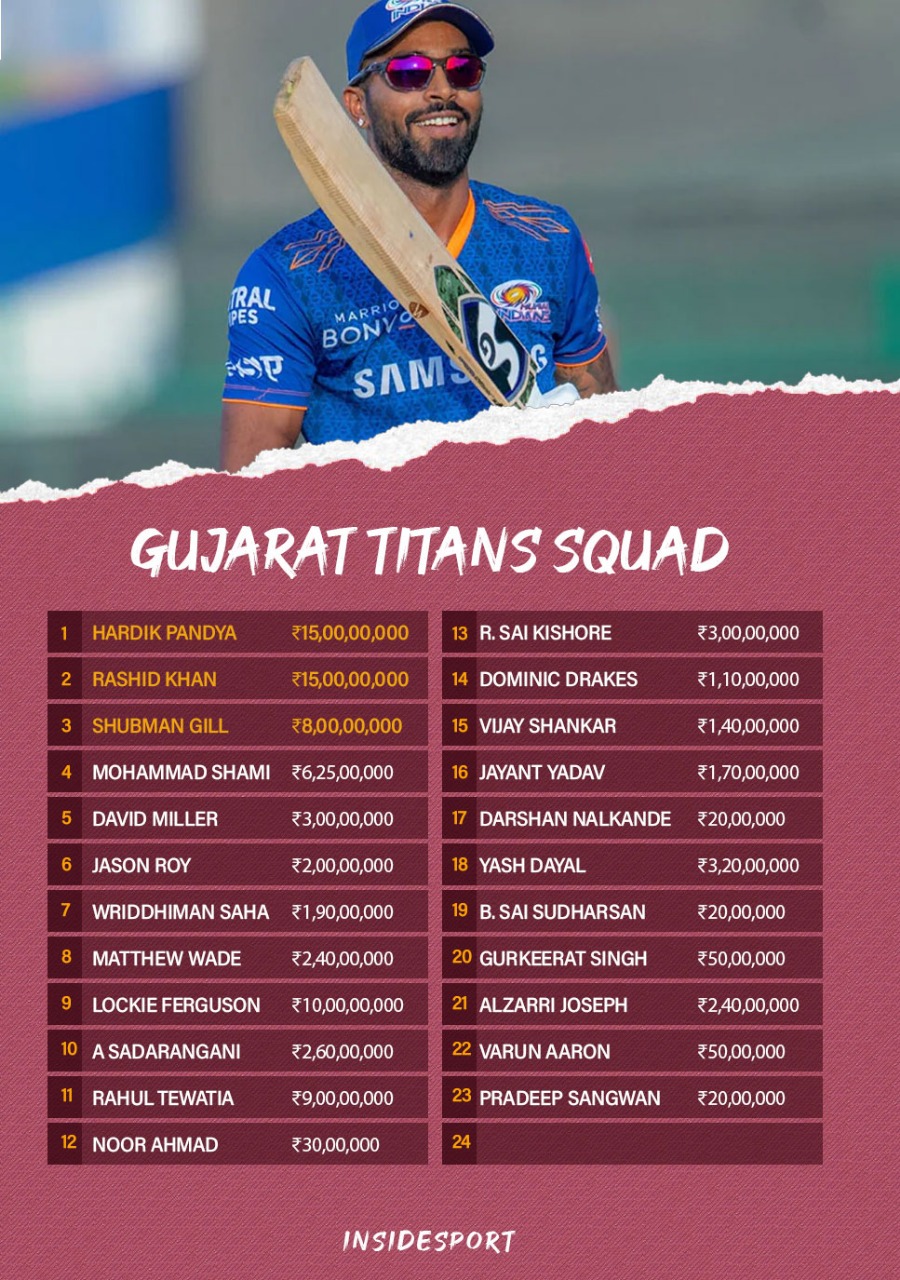 GT IPL Player List 2023 Complete list of players bought at IPL auction , Gujarat titans (gt) bought a total of 8 players in the ipl 2024 auction.